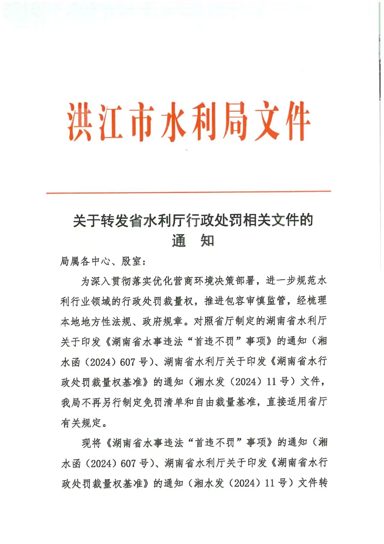 湖南省水事違法“首違不罰”事項清單