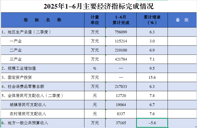 洪江市2025年1-6月主要經濟指標完成情況