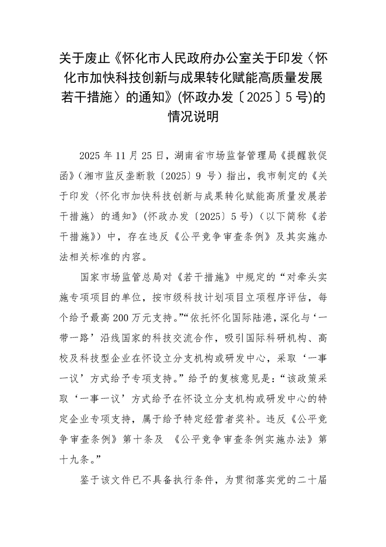 解讀:關于廢止《懷化市人民政府辦公室關于印發〈懷化市加快科技創新與成果轉化賦能高質量發展若干措施〉的通知》(懷政辦發〔2025〕5號)