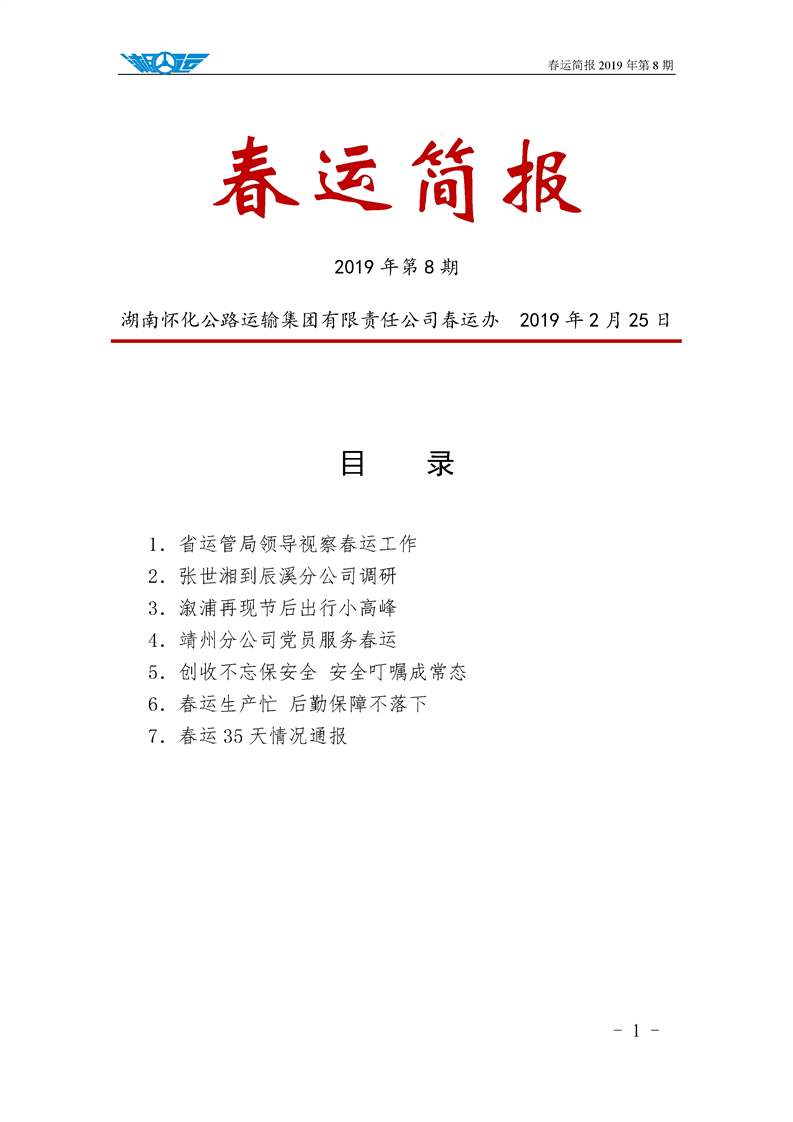 2019年湖南懷化公路運輸集團有限責任公司春運簡報(第八期)