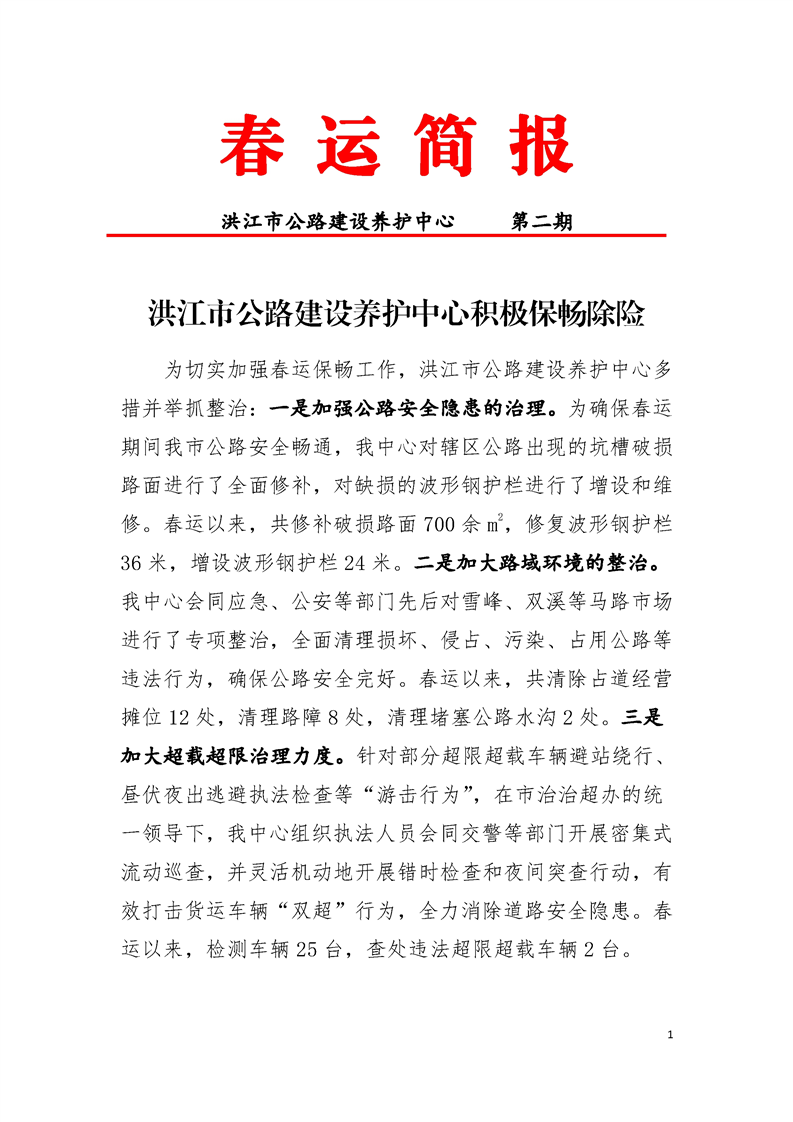 洪江市公路建設(shè)養(yǎng)護中心春運簡報 第二期