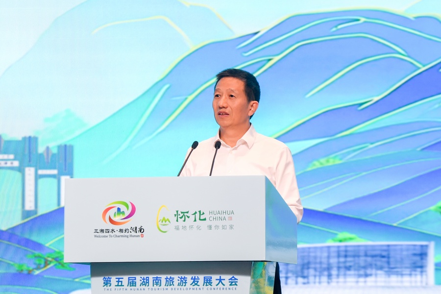 ▲9月17日上午,第五屆湖南旅游發展大會開幕,市委書記許忠建作懷化文化旅游推介。(懷化日報全媒體記者 楊智偉 攝)