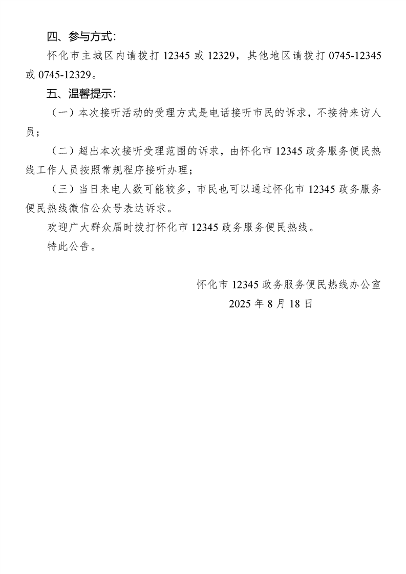 發布時間:2025-08-18 10:29信息來源:懷化市12345政務服務便民熱線辦公室
