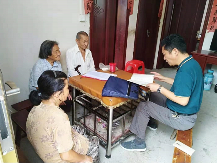 2019年10月,溆浦縣兩丫坪鎮幫扶責任人走訪溆浦縣兩丫坪鎮黃金村重度殘疾貧困戶李孝元。