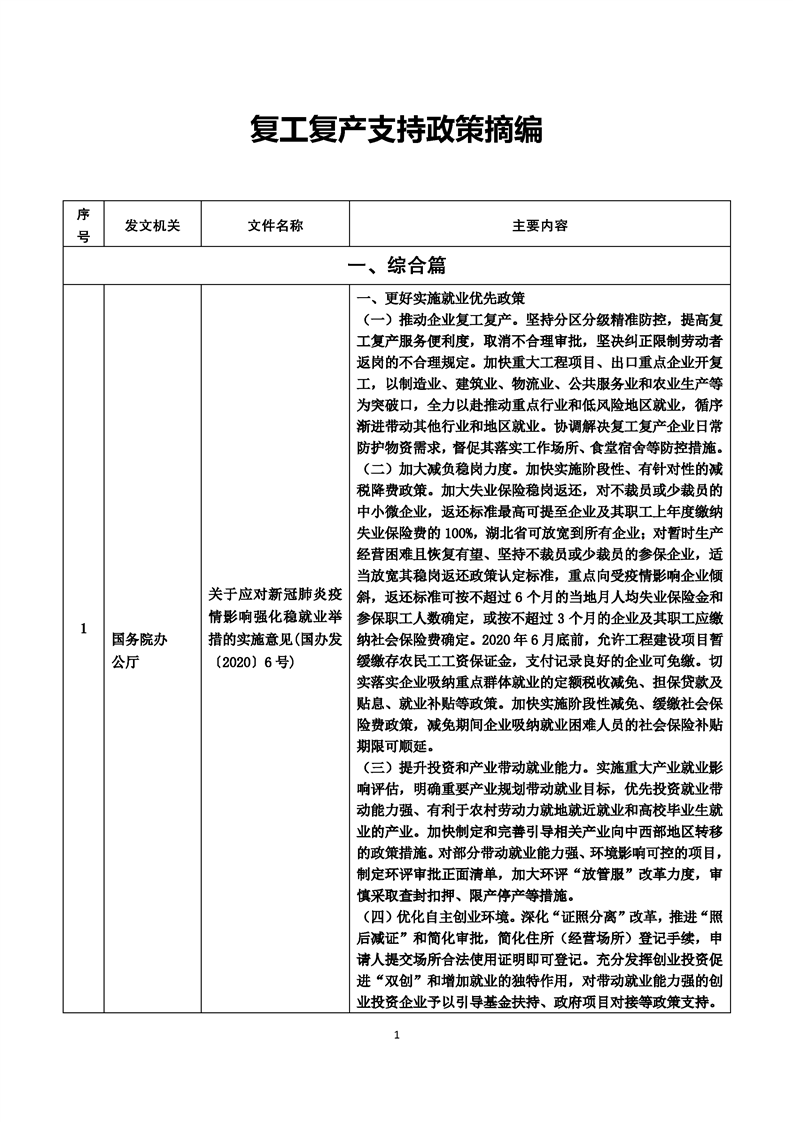 新冠肺炎疫情防控期間復工復產支持政策摘編(第5期)