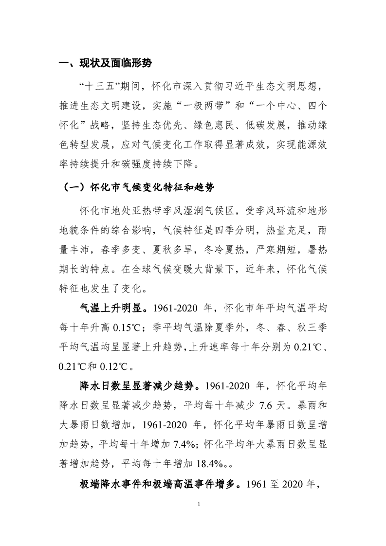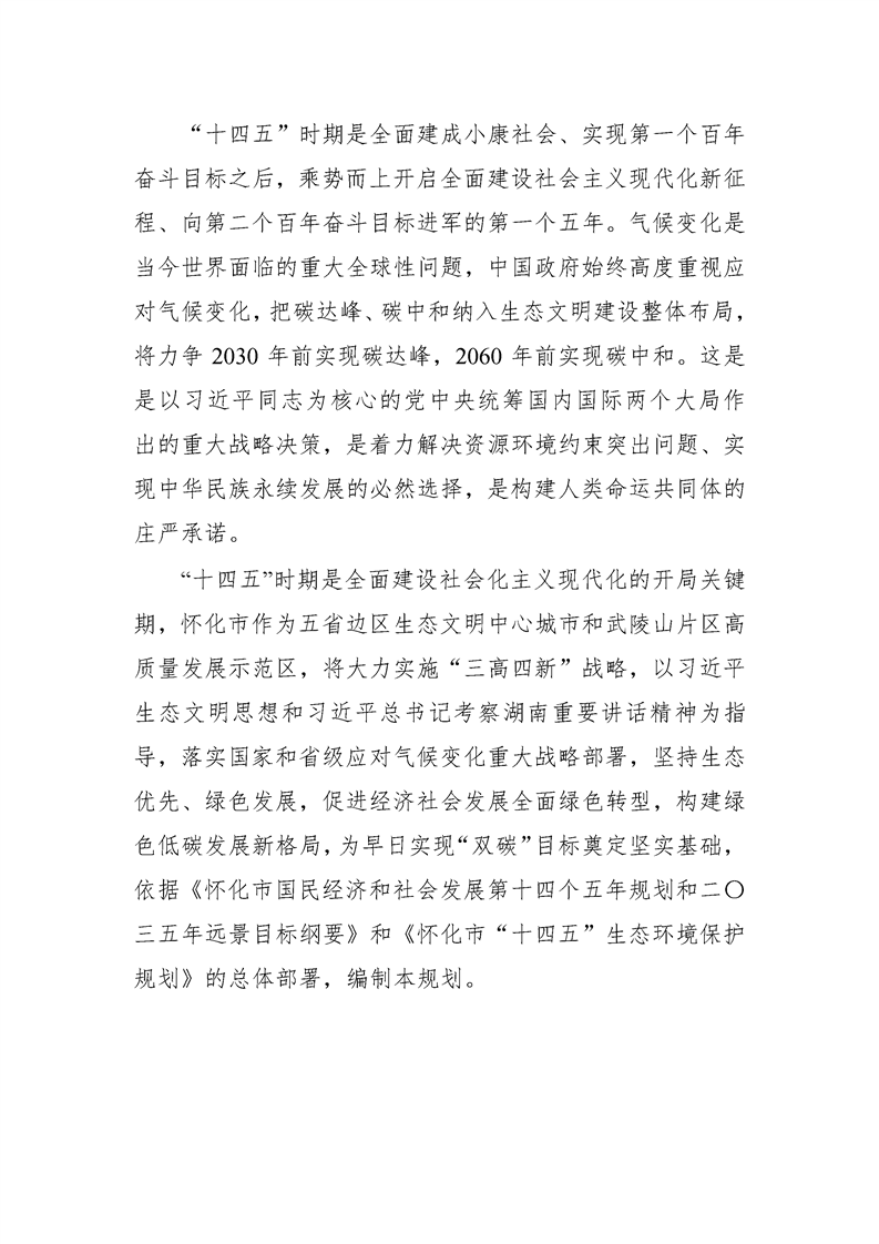 懷化市“十四五”應對氣候變化規劃