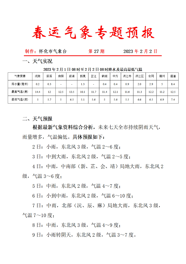 春運氣象專題預報 第27期